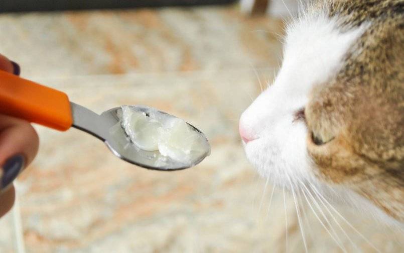 Не стоит волноваться, что это принесет вред кошке. Ее кишечник устроен так, что он не всасывает вазелиновое масло, а избавляется от него естественным путем.