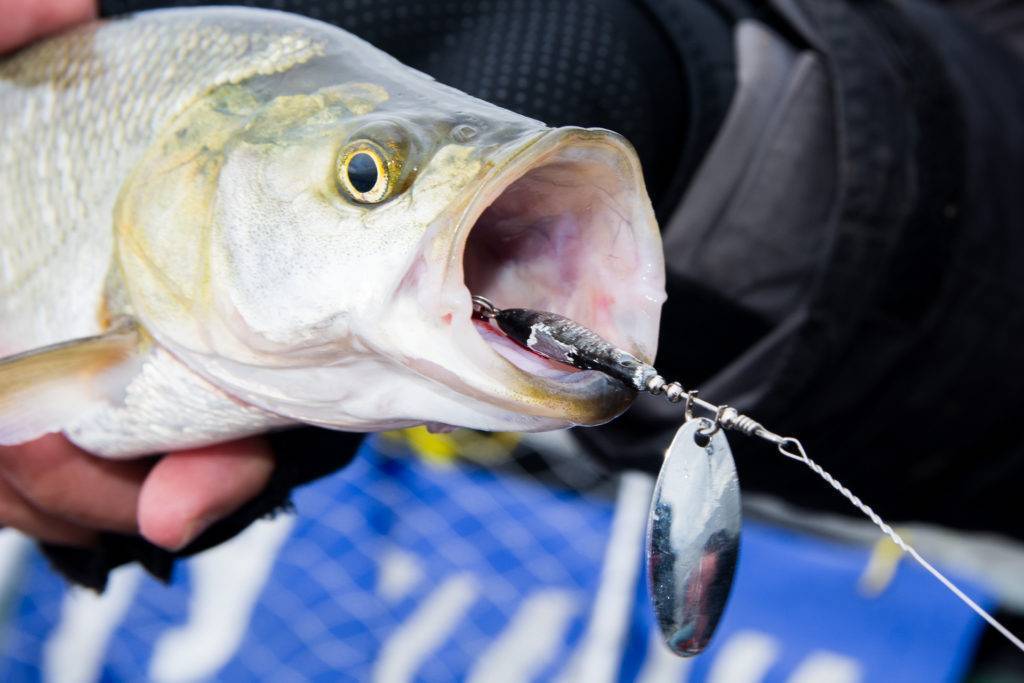 Из приманок выбирают исключительно жереховые девоны, светлые колебалки и вертушки, приманки типа кастмастер и пилькеры.