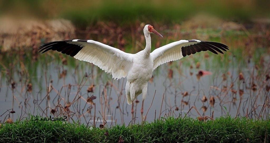 Отдыхают индийские журавли часто на мелководье, где они спасаются от наземных хищников.